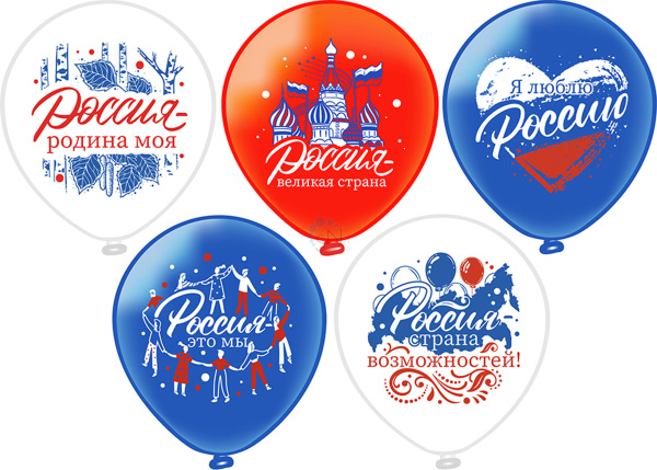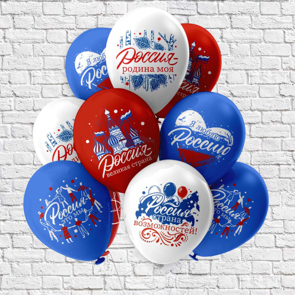 Шар воздушный 30см с рисунком Россия - родина моя! БиКей Ч54122 ассорти (уп 25 шт)
