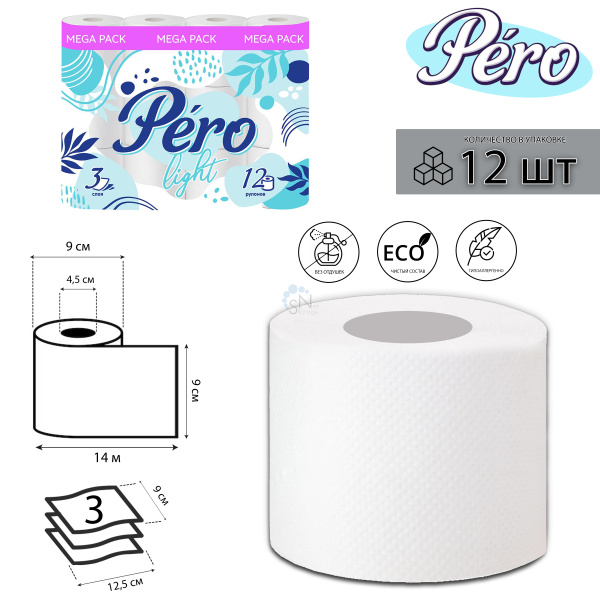 Бумага туалетная 12 рулонов 3-х слойная Pero Light ассорти 0162