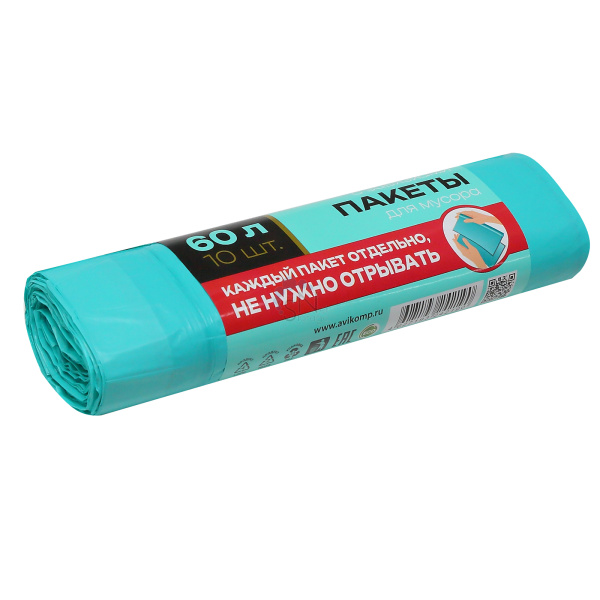 Мешки для мусора с завязками 60 л в рулоне 10 шт 60*80 см ПСД 22 мкм Avikomp Завтрак у Тиффани 42190 бирюзовые
