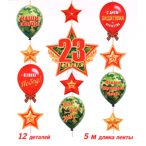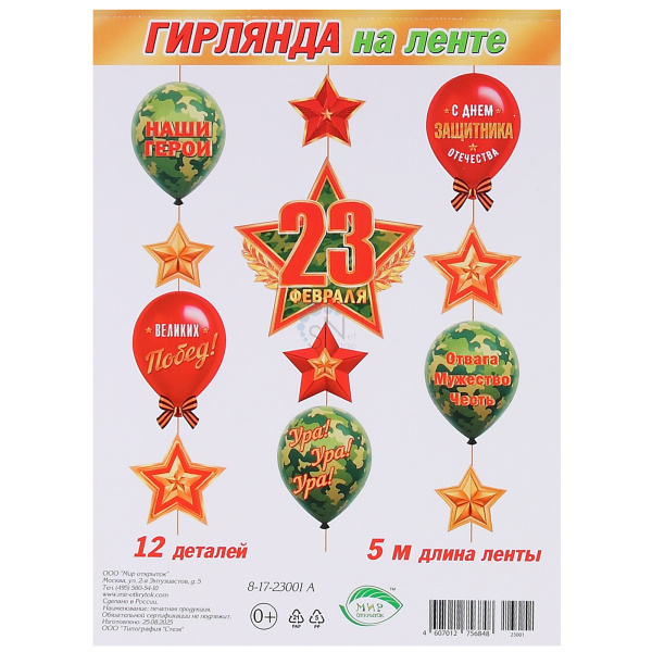Открытка-гирлянда 23 февраля 500см Мир открыток 8-17-23001А