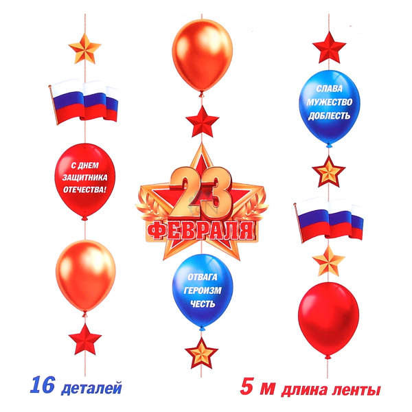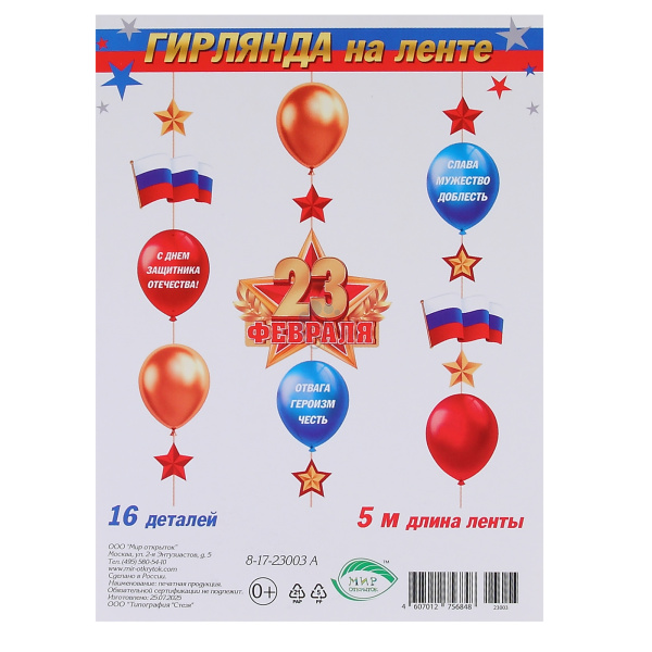 Открытка-гирлянда 23 февраля 500см Мир открыток 8-17-23003А