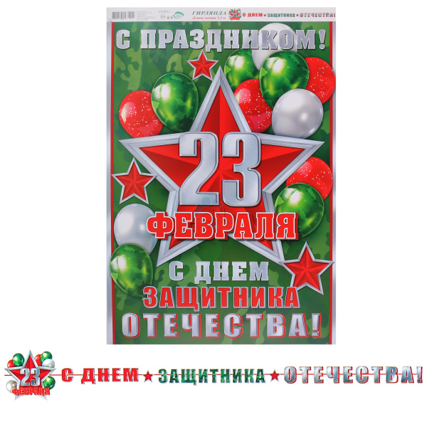Открытка-гирлянда 23 февраля С Днем защитника Отечества! 530см Мир открыток 8-15-23011А