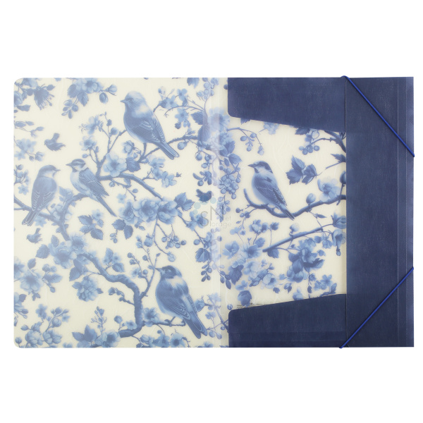 Папка на резинке А4 (240*320 мм) 0,40мм FIORENZO Blue birds 253471 полупрозрачная с рисунком, волокнистая фактура