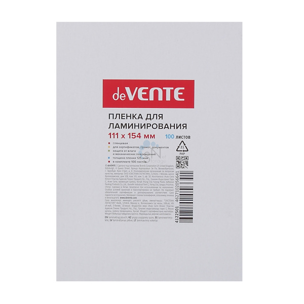 Пленка для ламинир.111*154 (125мк) глянец. deVENTE 100шт. 4122501