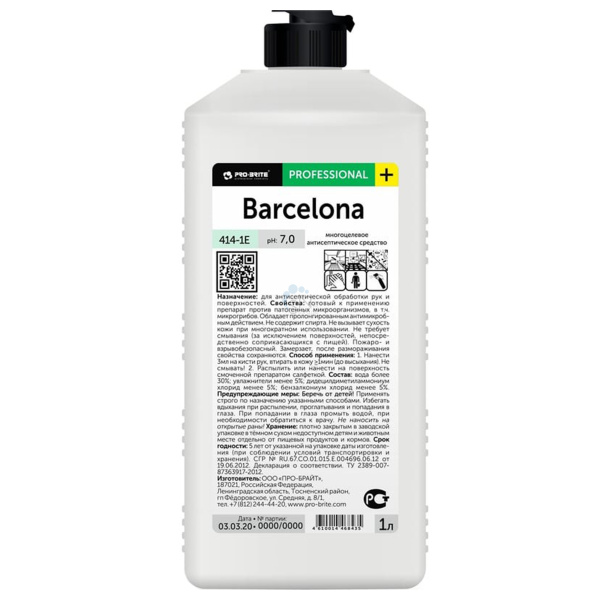 Антисептик для рук и поверхностей бесспиртовой, 1л, BARCELONA, Barista-Ltd