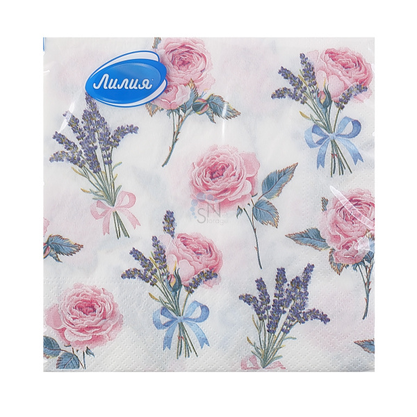 Салфетки бумажные 20шт 33*33 2-слойные Лилия Очарование 2425