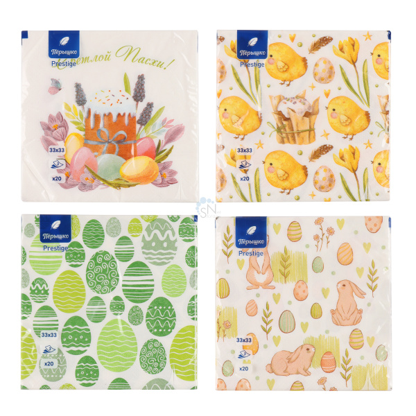 Салфетки бумажные 20шт 33*33 3-слойные Pero Prestige Пасхальное лукошко 2487 ассорти 4 вида