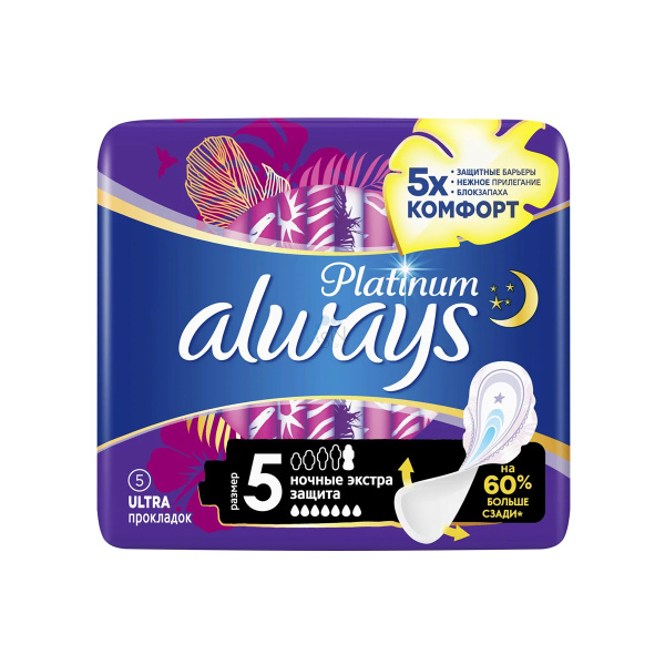 Женские прокладки гигиенические 5шт ALWAYS Ultra Platinum Night (5 капель)