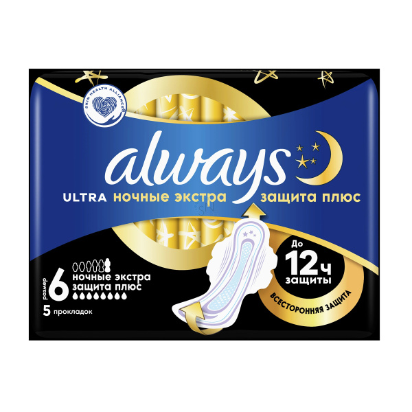 Женские прокладки гигиенические 5шт ALWAYS Ultra Platinum Night Plus (6 капель)
